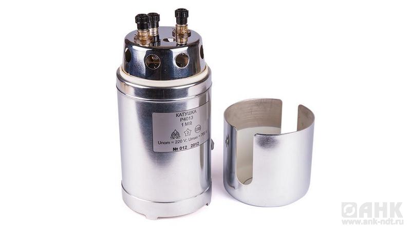 На верхней панели катушки Р4013 имеется отверстие для термометра. Катушка снабжены крышкой, являющейся частью наружного экрана.