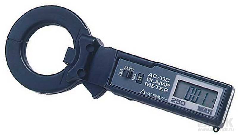 Клещи электроизмерительные, пределы измерения переменного и постоянного тока 200/1000 А (50/60 Гц), разрешение 0,1/1 А, погрешность 1,5 %, раскрытие 40 мм, 2 изм./сек, функция удержание измеренных значений. Элементы питания и время работы: 1,55 В, SR-44х2 (200 ч), LR-44х2 (100 ч). Масса и габариты: 170 г, 54 х 155 х 20 мм.