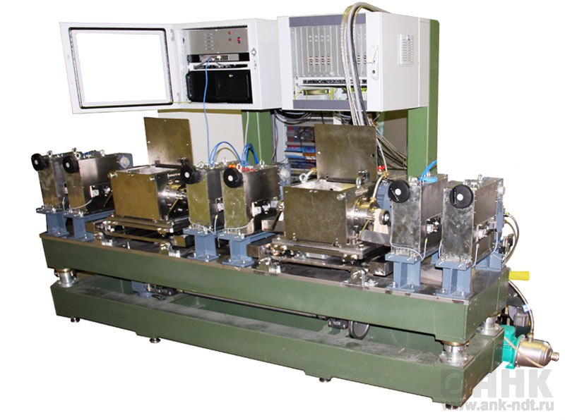 В установке используется два ротационных блока: один для контроля продольных дефектов, второй — для контроля поперечных дефектов и геометрических размеров. Предусмотрен также канал для температурной компенсации изменения скорости распространения УЗ колебаний в иммерсионной жидкости.